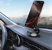 Le support assure un maintien ferme du téléphone grâce au système magnétique intégré et à la ventouse stable, garantissant une fixation sûre sur le pare-brise et le tableau de bord. Le design compact permet également d'utiliser le support dans d'autres endroits : dans la cuisine, la salle de bains ou à l'extérieur.
