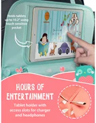 Avec le tapis de voyage Planet Buddies, vous pouvez garder votre voiture propre, organisée et adaptée aux enfants. Le protecteur de siège auto coloré représentant le personnage unique de Planet Buddies sert également de support pratique pour bouteille, mouchoir et tablette pour une visualisation confortable sur le siège arrière. Le support sécurisé pour tablette convient à toutes les tablettes jusqu'à 10,2 pouces et permet d'accéder aux ports de chargement et d'écouteurs. 2 bouteilles d'eau peuvent être placées en toute sécurité dans les supports prévus à cet effet afin qu'elles soient facilement à portée de main pour les enfants assis sur la banquette arrière. Un porte-mouchoirs intégré permet un accès direct aux mouchoirs. , Une grande poche supplémentaire est idéale pour garder tous vos essentiels de voyage à portée de main, pour vous et vos enfants. Gardez les jouets, les livres et les articles de papeterie, ou d'autres articles essentiels tels que des lingettes pour bébé ou des matelas à langer, à portée de main. Adapté à la plupart des sièges auto, les sangles réglables en haut et en bas maintiennent le tapis en place à l'aide de boucles. Fabriqué en polyester facile à nettoyer, le tapis est doté d'une grande quantité de mousse de rembourrage pour vous protéger