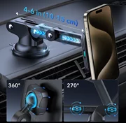 Le support peut être facilement installé sur le tableau de bord ou le pare-brise à l'aide d'une ventouse réutilisable, et la tête sphérique réglable vous permet d'ajuster votre téléphone à l'angle de vision le plus confortable. La possibilité de passer du mode portrait au mode paysage rend la navigation extrêmement pratique. Ce support est le choix idéal pour ceux qui recherchent la fiabilité, la fonctionnalité et un design moderne.