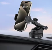 Le support se distingue par son utilisation confortable d'une seule main grâce à un mécanisme à ressort. Le bras télescopique et la tête rotative à 360° garantissent un positionnement optimal du téléphone. Le montage et le démontage sont intuitifs : il suffit de nettoyer la surface, d'appuyer sur la ventouse et de serrer le levier. Pour le montage dans les bouches d'aération, utilisez l'adaptateur de crochet fourni. Pour préserver l'adhérence de la ventouse, il est recommandé de la laver avant de la réinstaller.