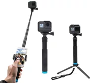La perche à selfie en alliage d'aluminium à longueur réglable de Telesin vous offre encore plus d'options pour enregistrer avec votre caméra de sport ou votre téléphone. La poignée antidérapante le rend extrêmement confortable à utiliser. Il se distingue également par sa durabilité considérable et est incroyablement compact lorsqu'il est plié. Le trépied inclus vous permet d'utiliser cet accessoire pratique également comme trépied.