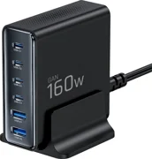 Équipé de quatre ports Type-C et de deux ports USB-A, le chargeur offre une grande flexibilité pour une utilisation quotidienne. Le port principal Type-C1 délivre jusqu'à 100 W, ce qui est suffisant pour charger rapidement la plupart des ordinateurs portables. Trois ports Type-C supplémentaires offrent 45 W chacun, ce qui est idéal pour les tablettes, les smartphones et d'autres appareils. Deux ports USB-A offrent 12 W chacun, parfaits pour les accessoires plus anciens. Les six ports peuvent fonctionner simultanément grâce à une distribution intelligente de l'énergie.