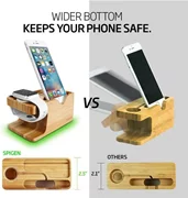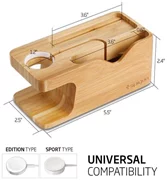 Le support est composé à 100% de bambou de première qualité et est visuellement élégant et lisse au toucher. Avec une découpe précise pour le chargeur à induction de l'Apple Watch et un emplacement pratique pour iPhone, ce support offre un confort maximal pour le chargement et la station d'accueil quotidiens.