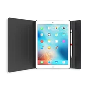The core of the rubberized plastic encloses the iPad Pro firmly and gently, while leaving free access to all ports, buttons and lens of the camera. Pads with smart display on / off function fit precisely on the core. The pads are secured against unwanted opening by an overlap with a magnetic flap. The case is also great as a three-position stand for work or entertainment.