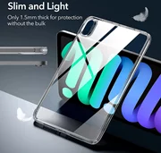 Classic Hybrid d'ESR est une coque monobloc composée d'une couche de polycarbonate transparente tressée sur les bords et l'arrière de l'iPad, et d'un cadre durable autour, en matériau thermoplastique souple qui protège davantage l'appareil des chutes.