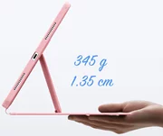 L'étui présente un design léger et fin qui n'ajoute rien à l'encombrement tout en offrant une protection solide pour le dos et les côtés de l'iPad. Le rabat s'appuie fermement sur l'écran pour le protéger des rayures et de la saleté, tandis que la fonction de veille et de réveil automatiques prolonge l'autonomie de la batterie et rend l'utilisation de l'iPad encore plus intuitive.