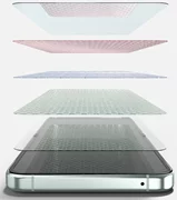 Film de protection Ringke Dual Easy transparent couvrant toute la surface de l'écran. Il est fabriqué en polycarbonate d'uréthane de haute qualité et possède une résistance aux rayures de 3H qui protège efficacement l'écran des dommages. Le film reproduit parfaitement les couleurs affichées et possède un revêtement spécial anti-traces de doigts qui protège l'écran contre les traces de doigts.