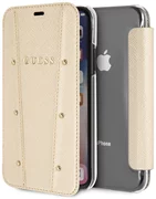 Collection : Kaia Saffiano Type : Livre Matériau : PC / PU Leather Couleur : Or Compatibilité : iPhone X/Xs  ; Produit fabriqué sous licence de Guess.