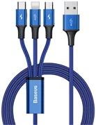 Vous n'avez plus besoin d'attendre la fin du chargement d'un appareil pour en connecter un autre. Le câble 3 en 1 de Baseus peut alimenter jusqu'à 3 appareils en même temps. Chargez facilement votre iPhone, smartphone Xiaomi ou tout autre avec une entrée USB-C, ainsi qu'une batterie externe ou une petite lampe avec un port micro USB - les configurations sont presque illimitées. Cette combinaison pratique vous apportera confort et vous fera gagner du temps.