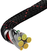 Le produit est équipé d'un câble à 6 bandes, responsable de son fonctionnement stable. Il se distingue également par sa haute résistance à la flexion, à la déchirure et à d'autres types de dommages. Il possède également des connecteurs extrêmement durables, dont les boîtiers se caractérisent par une très faible sensibilité aux rayures. De plus, grâce à sa longueur de 1 m, vous pouvez utiliser confortablement votre téléphone pendant le chargement.