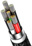 Le câble est fabriqué à partir d'une tresse en nylon extra-fort, qui résiste à la flexion et à la rupture. La partie du câble située au niveau de la fiche a été renforcée, ce qui vous garantit qu'elle ne sera pas endommagée par des flexions répétées. En outre, vous n'avez pas à vous soucier de la surcharge : le câble coupe automatiquement l'accès à l'alimentation lorsque l'appareil est complètement chargé, tout en assurant une sécurité maximale. Vous pouvez donc brancher votre téléphone pour le charger pendant la nuit sans aucun problème.