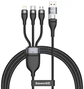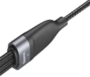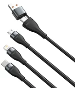 Le câble est doté d'un double connecteur de sortie USB-C/USB-A, ce qui vous permet de connecter votre appareil quel que soit le chargeur ou le port de votre ordinateur portable ou ordinateur. Le port USB-C prend en charge une alimentation de 100 W 5A/20 V prenant en charge la charge rapide sur les smartphones, les tablettes, les batteries externes, etc. le port Lightning prend en charge 200 W et le port micro prend en charge 18 W.