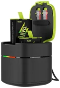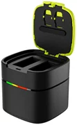 Le chargeur Telesin vous permet non seulement de charger rapidement les batteries, mais aussi de les stocker et de les transporter. Vous trouverez également des compartiments spéciaux pour 2 cartes mémoire. Vous pouvez ainsi toujours avoir tous les accessoires nécessaires à portée de main ! De plus, l'appareil est compatible non seulement avec les batteries Telesin, mais aussi avec les batteries GoPro d'origine et les batteries d'autres fabricants.