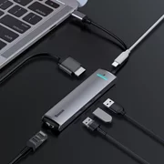3 ports USB 3.0 : taux de transfert de 5 Go/s, rétrocompatibilité 1 port RJ45 : port Gigabit Ethernet 10/100/100 Mb/s 1 x HDMI : 4 K 30 Hz 1 port USB-C, alimentation 87 W |