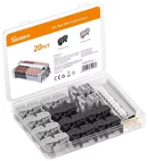 Le kit comprend 20 pièces de connecteurs rapides qui peuvent être montés facilement et rapidement sur un rail DIN. Grâce aux éléments de montage de précision, les connecteurs assurent une connexion sûre et stable des fils, ce qui est extrêmement important dans les installations électriques professionnelles.