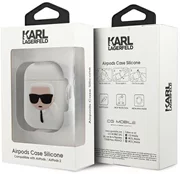 Housse en silicone Karl Lagerfeld. L'étui en silicone protège la station d'accueil pour casque sans fil Apple AirPods contre les dommages de surface et les pertes éventuelles. L'étui en silicone de haute qualité s'intègre parfaitement dans l'étui d'origine des AirPods et est extrêmement agréable au toucher. Sur le côté de l'étui, il y a un anneau pratique qui vous permet de fixer l'étui par exemple à la laisse.