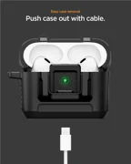 Un aimant intégré entre les parties supérieure et inférieure offre une prise en main et une commodité supplémentaires. Le fabricant a inclus un mousqueton pratique qui permet d'accrocher facilement l'étui à un sac, un sac à dos ou une ceinture, ce qui élargit son champ d'application. L'étui présente des découpes précises qui permettent un accès confortable à toutes les fonctions de l'appareil. En outre, il est entièrement compatible avec la recharge sans fil, de sorte qu'il n'est pas nécessaire de retirer l'étui pour recharger l'appareil.