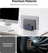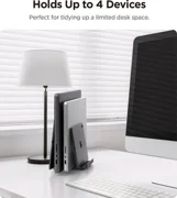 Spigen LD208S4 est un organisateur de bureau compact qui peut contenir jusqu'à quatre appareils à la fois. Ordinateurs portables, tablettes, smartphones ou claviers Bluetooth trouvent tous leur place dans un design vertical élégant qui libère de l'espace sur votre bureau.
