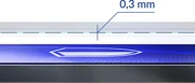 Verre presque invisible de 0,2 mm d'épaisseur, il améliore la sensation d'absence de couche supplémentaire sur l'écran.