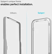 Le verre trempé de la série « Alignmaster » de Spigen a été fixé avec une découpe parfaite à l'avant du téléphone avec un cadre de montage, grâce auquel vous le positionnez parfaitement sur l'écran. Le fabricant a simplifié la méthode d'assemblage au point qu'elle soit totalement intuitive pour chaque utilisateur.