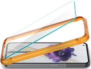 Le verre trempé de la série « Alignmaster » de Spigen a été fixé avec une découpe parfaite à l'avant du téléphone avec un cadre de montage, grâce auquel vous le positionnez parfaitement sur l'écran. Le fabricant a simplifié la méthode d'assemblage au point qu'elle soit totalement intuitive pour chaque utilisateur.