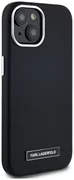 Cet élégant étui est fabriqué en éco-cuir de haute qualité, ce qui lui confère un aspect subtil et mat. En outre, il comporte des inserts métalliques autour du cadre de l'appareil photo et sur les boutons latéraux, ce qui souligne l'attention portée aux détails. La partie inférieure de l'étui est ornée d'un emblème portant le logo de Karl Lagerfeld, ce qui ajoute une touche luxueuse au design.