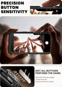 L'étui est fabriqué en polycarbonate (PC) et en polyuréthane thermoplastique (TPU) durables et de haute qualité. Cette construction à deux couches offre une protection efficace, même en cas de chocs extrêmes et de chutes d'une hauteur pouvant atteindre 3 mètres. L'étui est conforme à la norme militaire rigoureuse MIL-STD 810G 516.6, ce qui signifie qu'il a passé le test de 26 chutes d'une hauteur de 2 mètres sans dommage.