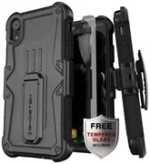The Iron Armor iPhone XS phone case comes highly recommended if you work in a rough environment or for those of us who are simply clumsy. This iPhone XS Max phone case is extremely durable with dual-layer construction and a sturdy polycarbonate frame that provides a kickstand for the utmost convenience. And speaking of convenience, this case allows Face ID unlock capabilities, access to all of your ports, functions, and buttons, and an easy to use belt clip and holster. It boasts a tempered glass screen with raised bezels so you never have to worry about any cracks. It is military grade standard drop tested and take a fall from two meters. With multiple colors to choose from, it becomes easy to accessorize and protect your device.