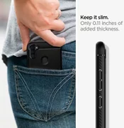 Série Spigen Rugged Armor. L'utilisation de polyuréthane thermoplastique de haute qualité comme matériau de fabrication rend l'étui extrêmement fin et léger tout en offrant une excellente protection de l'appareil contre les dommages et les rayures.