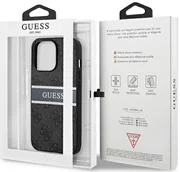 Collection : Collection Rayures 4G Type : étui rigide Matériau : TPU/cuir synthétique Couleur grise Compatibilité : iPhone 13 Pro Max 6,7" Produit fabriqué sous licence Guess