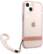 Collection : Bracelet translucide Type : étui rigide Matériau : PC/TPU Couleur rose Compatibilité : iPhone 13 mini 5,4" Produit fabriqué sous licence Guess.