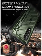 Le Supcase Unicorn Beetle Pro est un étui qui a subi des tests de performance en culbutage, 26 fois à une hauteur allant jusqu'à 1,2 m, recevant ainsi le certificat militaire américain MIL-STD 810G-516.6.
