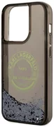 L'étui se distingue par ses particules de paillettes liquides qui changent de position lorsque l'angle est modifié. Outre les effets visuels, le boîtier transparent classique est orné du logo du célèbre créateur.