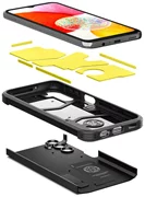 Cas de la série Armure robuste marques Spigen est la nouvelle couverture de l'entreprise. Sa construction en deux parties est faite de plastique thermoplastique résistant à l'abrasion et d'un cadre en polycarbonate de renforcement. À l'intérieur du couvercle se trouve un remplissage sous la forme d'une mousse technologique, qui fournit une couche de protection supplémentaire contre les chocs ou la chute de l'appareil.