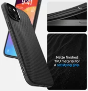 L'étui de protection mince Spigen Liquid Air n'épaissit pas le téléphone de manière significative tout en conservant son design et sa forme d'origine. L'étui Liquid est fabriqué dans un matériau TPU durable et résistant aux chocs, ce qui améliore l'adhérence et le confort. Le produit s'adapte parfaitement, est entièrement fonctionnel et ne limite pas l'accès aux ports externes.