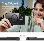 Le Classic Hybrid HaloLock d'ESR est un étui monobloc composé d'une couche transparente en acrylique qui entoure les bords et le dos du téléphone, et d'un cadre robuste en matériau thermoplastique souple qui protège l'appareil contre les chutes.