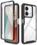 L'étui se compose de deux éléments : un cadre qui entoure les bords du téléphone avec un verre hybride intégré d'une dureté de 5H, et une armure hybride qui se porte à l'arrière de l'appareil.