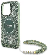 Guess GUHMP16LHCPOFPA iPhone 16 Pro 6,3" coque rigide verte IML fleurs partout Electro avec sangle perlé MagSafe (GUHMP16LHCPOFPA)
