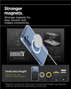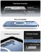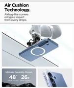 L'étui Spigen Ultra Hybrid Magsafe combine le meilleur de la protection et de l'esthétique pour offrir à votre smartphone une sécurité et un look unique. Grâce à sa conception hybride unique (TPU + PC), qui associe un cadre durable à un panneau transparent, votre téléphone conserve son design d'origine tout en étant efficacement protégé contre les dommages. Votre téléphone conserve son design original tout en étant efficacement protégé contre les dommages. Les coins renforcés avec coussins d'air (Air Cushion) absorbent efficacement les chocs, offrant une protection supplémentaire contre les chutes.