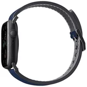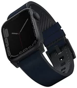 Uniq Straden - bracelet sophistiqué pour Apple Watch fabriqué à partir d'une combinaison de cuir délicat et de silicone durable Conçu pour de hautes performances grâce à la structure hybride de l'extérieur en cuir imperméable et du dessous en silicone texturé. Les stries surélevées sous la bande limitent l'accumulation d'humidité et assurent une meilleure ventilation. La forme incurvée ergonomique du poignet le rend facile à enfiler et est extrêmement confortable à porter. Découpe avec alésage personnalisé et boucle en acier inoxydable 316. Compatibilité : Apple Watch 42/44/45 mm