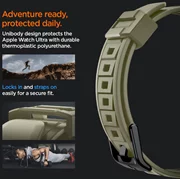 Ceinture confortable à l'allure sportiveSpigen Rugged Armor ProFabriqué à partir d'un matériau TPU flexible décoré de touches de fibre de carbone. Il comporte un boîtier intégré avec des bords accentués pour protéger l'enveloppe de la montre des rayures et des chocs. La sangle est entièrement fonctionnelle et réglable pour répondre aux besoins individuels.