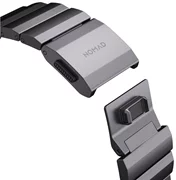 basé sur le style des bracelets de montre classiques, avec des maillons réglables et des cornes intégrées