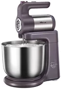 Le mélangeur est équipé d'un moteur de 300 W pour un travail puissant et efficace. Il peut mélanger la pâte pour les muffins ou les crêpes et la crème fouettée. Les fouets ont été conçus pour un fouettage rapide, tandis que le batteur à crochet peut traiter une pâte à pain épaisse.