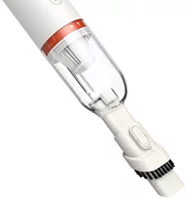 Dans l'emballage, vous trouverez des accessoires supplémentaires pour faciliter le nettoyage. L'embout étroit souffle la saleté dans les espaces difficiles à atteindre. Tandis que la seconde brosse se compose d'une partie étroite qui vous permet de nettoyer les tissus d'ameublement et de traiter parfaitement la poussière, les miettes ; et d'une brosse douce qui recueille la poussière, les cheveux, etc.
