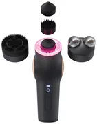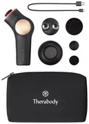 TheraFace PRO, 3 accessoires de percussion (conique, micro point, plat), anneau microcourant, anneau thérapeutique à lumière LED (lumière rouge, bleue et infrarouge), anneau de nettoyage en profondeur, TheraOne, gel conducteur (50 ml), sac de transport souple, support, câble de charge USB-A vers USB-C.