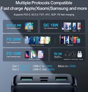 - Tension de sortie Type-C : 5 V/3 A, 9 V/2,22 A, 12 V/1,67 A