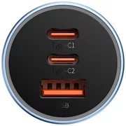 Optez pour le chargeur de voiture universel Baseus Golden Contactor Pro. Il vous ravira par son design moderne et son boîtier robuste, mais aussi par sa charge rapide avec une puissance maximale de 65 W. Il possède 2 ports USB-C et 1 port USB-A, vous permettant de charger 3 appareils simultanément. Il est compatible avec une tension universelle de 12 à 24 volts, ce qui le rend adapté aux voitures, aux véhicules récréatifs ou aux gros camions.