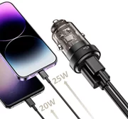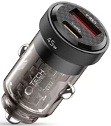 Le Tech-Protect CC45W est un chargeur de voiture à deux ports équipé de prises d'une puissance totale de 45W. L'un des ports est un USB-A typique avec la norme de charge rapide QuickCharge 3.0, tandis que l'autre est un USB Type-C avec la technologie PowerDelivery implémentée.