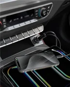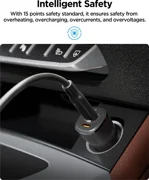 Grâce à son design compact (24 x 25 x 66,5 mm), le chargeur se glisse facilement dans la voiture sans prendre beaucoup de place. Il présente une compatibilité polyvalente, prenant en charge des appareils tels que les montres intelligentes, les smartphones, les tablettes, le MacBook Air et les Airpods.