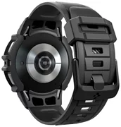 Un bracelet confortable avec une touche sportive Spigen Rugged Armor "Pro". Fabriqué à partir d'un matériau TPU flexible décoré d'accents en fibre de carbone. Comprend un étui intégré avec des bords accentués pour protéger l'enveloppe de la montre contre les rayures et les chocs.